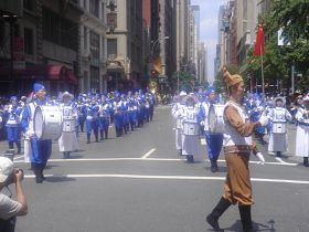 【明慧网二零零八年六月四日】二零零八年六月一日下午,纽约菲律宾社区在曼哈顿麦迪逊大道举行每年一度的独立日游行,有上百支菲律宾和其他族裔队伍参加。法轮功天国乐团作为唯一参加的华裔团体受到瞩目,被观众称为游行中“最壮观的乐队”。