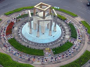 法轮功学员周日在云林斗六地标斗六圆环晨炼