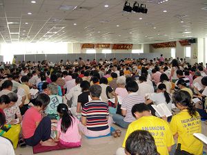 二十九日下午,在云林水利会大楼進行大组交流,约六百位学员齐聚一堂,在集体学法之后,大家互相谈心得体会,谈证实法中在法上的认识、心性的提升等等。大家发言踊跃,听到老年同修由不识字到会自己学法進而积极讲真相坚持不懈的过程,有同修表示感到汗颜,在交流中找到差距,突破观念,促使自己加紧脚步跟上正法進程。