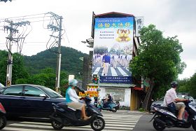 |  台北故宫博物院附近的“法轮大法好”大型广告看版 |