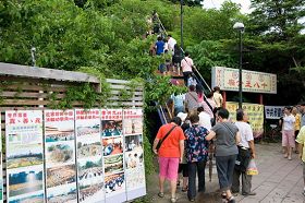 |  游客朝西子湾的另一景点──打狗英国领事馆走去,左边的就是法轮功的真相看板 |