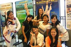 台中市安雅舞蹈艺术中心一行七人由杨雅琪(右后一)带队观赛,他们开心的在大厅海报看板前拍照留影