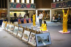 ![]() 法轮功学员在画展现场演示功法 |