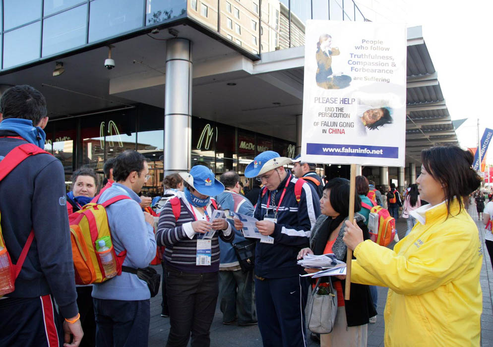 澳洲人史蒂夫(Steve Xu),告诉法轮功学员索菲(Sophie),他非常关注法轮功学员的处境。他表示,看到法轮功已经被迫害九年了,就是因为中国人没有真正做人的自由。他希望中国人民能获得说话和信仰的权利,希望中国的记者能真正有权利报导真实新闻,让中国人民真正的看到世界的自由。