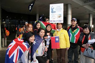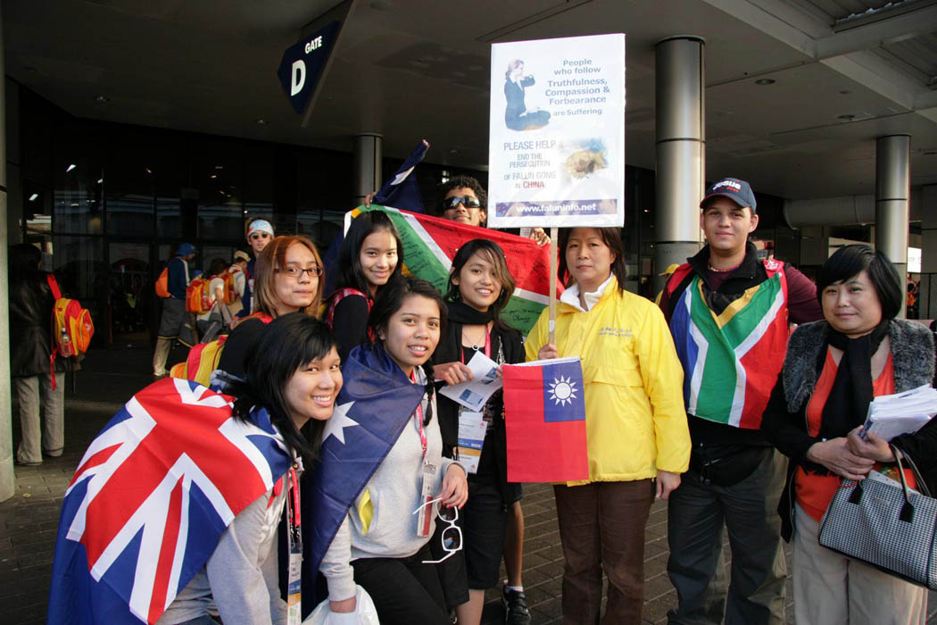 许多来参加世界青年日的天主教徒对法轮功学员们说:我们支持你们,我们将为你们祷告,你们一定会成功的。