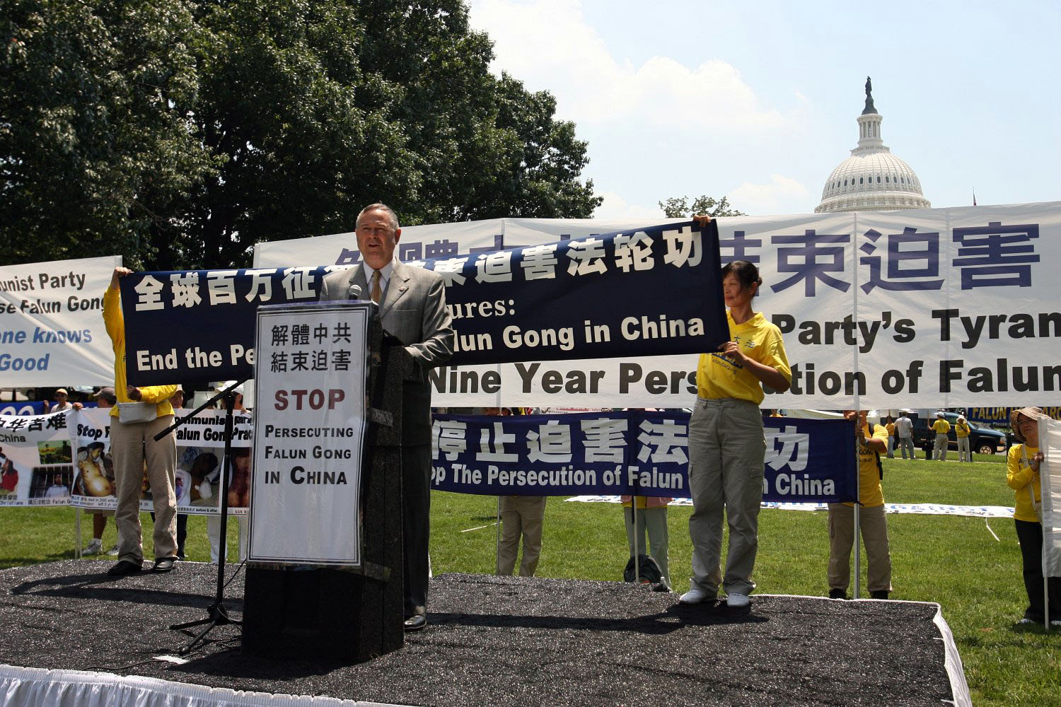 美国众议员Rush Holt在集会发言上说,每年这个时候,法轮功学员在酷热天气下集会,这本身就说明了问题。“我把他们身处阳光之下视作一种象征:就是曝光迫害、曝光(中共)抹杀人权。”