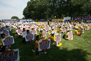 ![]() 法轮功学员在美国华府集会,要求结束迫害。 |