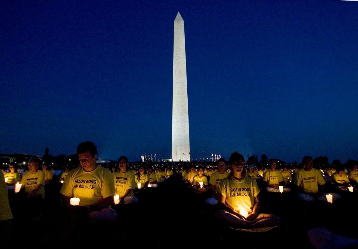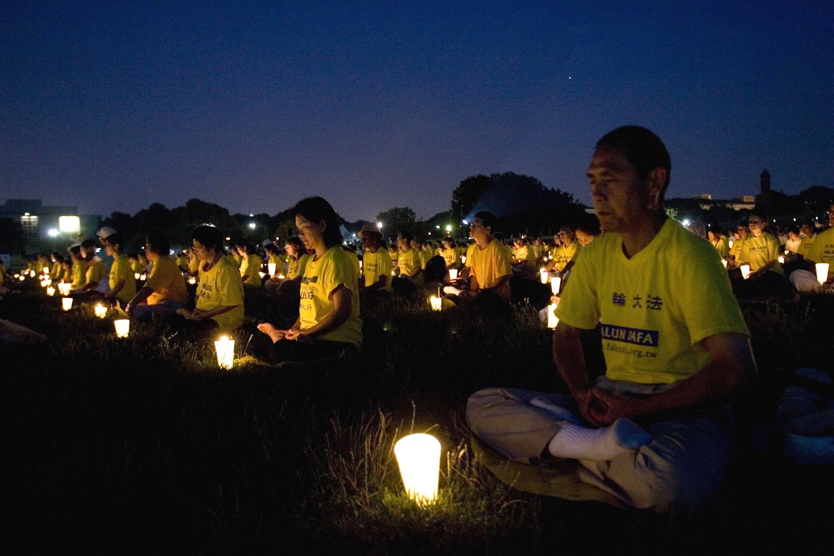 二零零八年七月十八日傍晚,夜幕悄悄落下,喧闹的城市开始归于平静,如每年的这个时候一样,来自世界各地的法轮功学员们聚集在华盛顿纪念碑前的草地上,默默的点起盏盏烛火,用烛光守夜的形式悼念被中共迫害致死的同修。