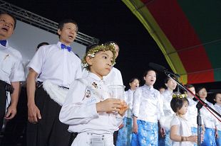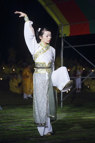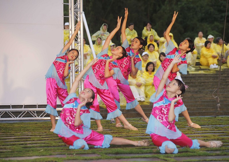来自台北的采佾艺术舞蹈团的六个小朋友(也是法轮功小弟子,)表演《水莲》,可爱而柔美的表演赢得大人们的掌声。带领的团长翠婷也表演两个舞蹈,她表示,以舞蹈形式,悼念遭受迫害的修炼人,及关怀因为迫害而生活在苦难中的孩子。她同时希望透过舞蹈与大法弟子互相勉励,早日停止迫害。