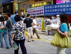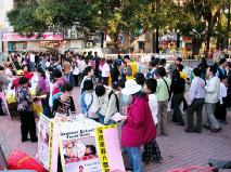 「七•二零」迫害至今九年来,台湾与海内外的法轮功学员相继以游行集会、新闻发布会、烛光夜悼、征集签名、反酷刑演示、“真善忍美展”与“证实法摄影展”、文艺演出等形式,深入社区,向政府和媒体讲真相;更突破封锁,给中国民众打电话、传真和寄邮件等方式,锲而不舍的向世人讲述着法轮功被中共迫害的真相,启发人们的善念良知。
