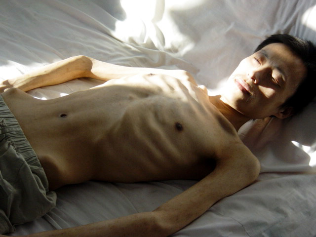 ![]() 大陆学员张忠原体重140多斤,被折磨得只剩一副骨架 |