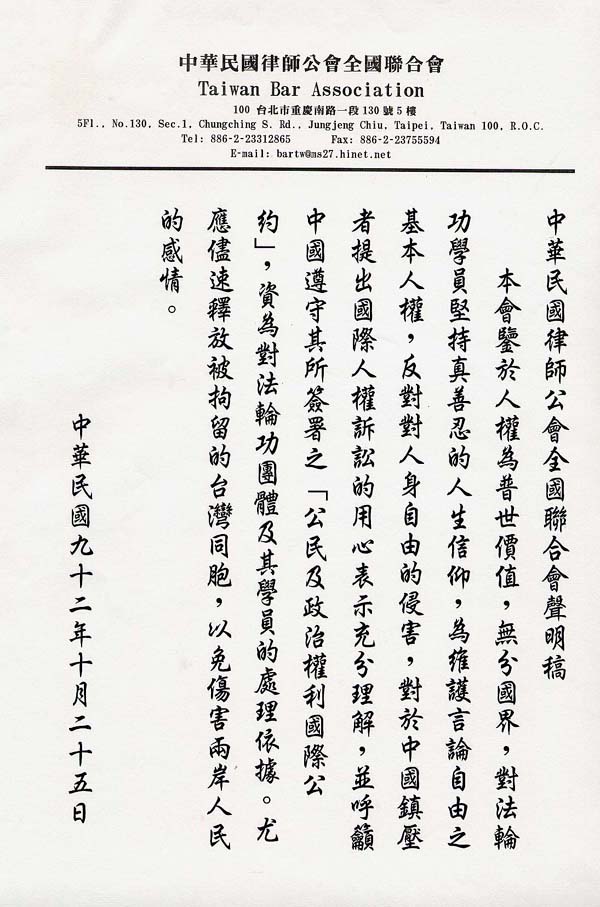 ![]() 台湾律师公会全国联合会声明支持「诉江案」 |