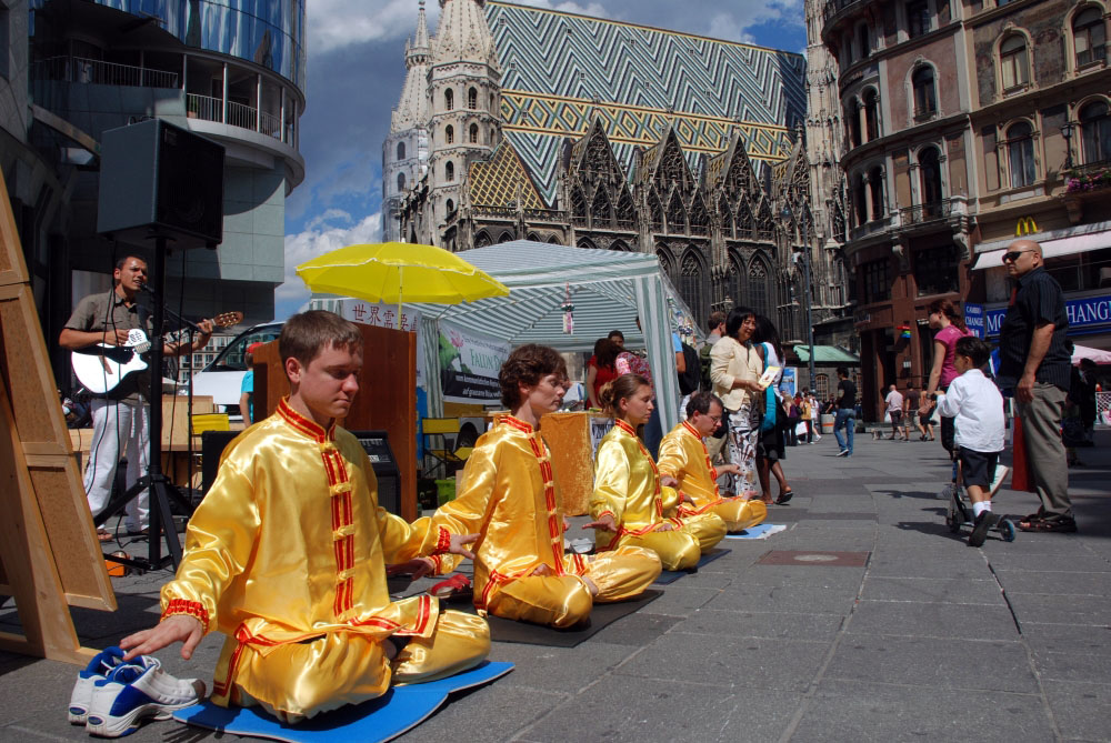 奥地利西人学员乌苏拉,是在一九九八年五月十三日得到《转法轮》这本书的,当时中国少林寺和尚来奥地利演出时,她从他们手中买的《转法轮》这本书,并随之开始修炼。当时中国政府在国外大力宣传法轮功,因为他的强身健体的功效,和让人们重建道德,以“真善忍”为做人准则。但是忽然在一九九九年的七月二十日后,她在电视报道中看到了中共开始大规模的迫害法轮功,并在全世界造谣诬蔑法轮功。乌苏拉就是从那个时候开始,一直在向当地的政府和民众、媒体,讲述法轮功被中共迫害的真实情况。她并表示,她会和世界上其他国家的法轮功学员一样,要把真相一直讲下去,直到迫害结束。
