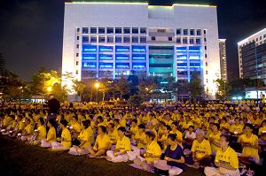 二零零八年七月二十日,夜幕悄悄低垂时分,静坐在台北市信义广场上的法轮功学员默默的点亮了盏盏烛光,悼念为维护“真、善、忍”真理而遭受中共迫害致死的法轮功学员,谴责无理的血腥暴行,呼唤良知制止长达九年的残酷迫害。