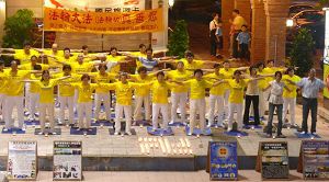 二零零八年七月二十日,一千多名来自台湾南部七县市的法轮功学员和各界正义人士聚集在高雄巨蛋旁明诚公园广场上举行集会,谴责中共对中国人民,特别是对法轮功学员的迫害,并声援四千万勇士退出中共。