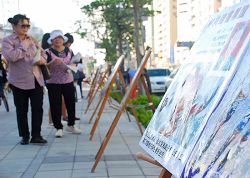 一位女性市民看了酷刑图片后,对法轮功学员无辜遭受中共酷刑非常不忍心,但她不解的是,法轮功学员都是好人,为什么会受到中共的迫害?经过现场解说学员说明后,她明白了真相,也了解中共的邪恶。