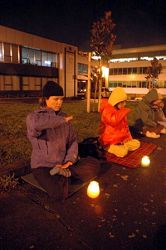 在阵阵冬雨与寒风中,法轮功学员表情肃穆,静坐无语。过往车辆似乎感受到法轮功学员坚韧不屈的精神,频频鸣笛以示支持。