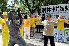 ![]() 墨尔本举行反迫害集会,民众纷纷驻足观看 |