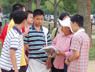 广场上时而有中国大陆旅游团经过,大陆游客停下脚步倾听着高音喇叭的广播,有的还拍下了照片。学员们抓住时机向他们发真相资料,赠送《九评》,并传达全球近四千万勇士退出中共的信息,劝他们尽快脱离中共,退党自救。