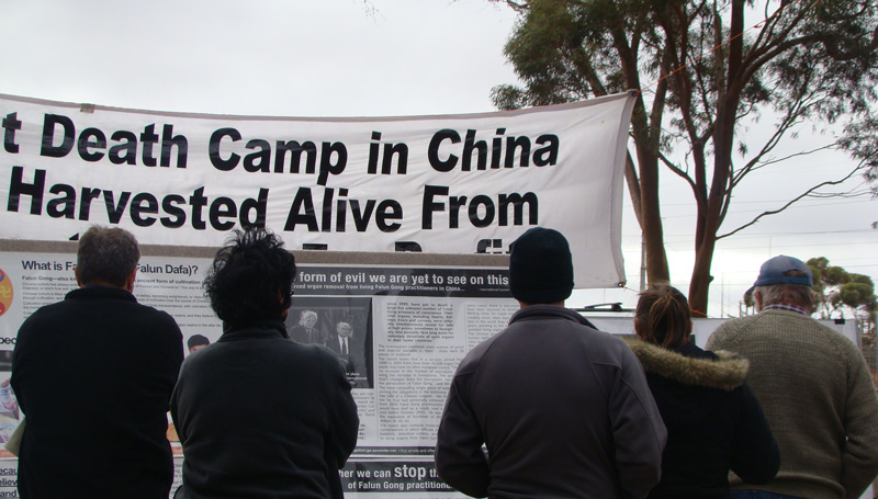 Adrian Lyons是一位从英国来澳洲定居的老人,他在街上仔细的看着横幅和展板上的信息。他说,“这实在太可怕了,真是应该把这曝光……。我们要做些什么(来制止迫害),我们该怎么做呢?无论我们能做什么我们就要去做。”