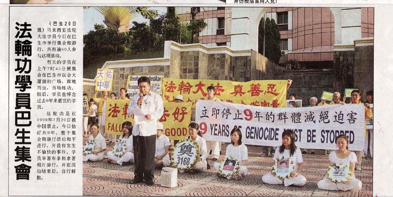 ![]() 长崎中领馆前,抗议中共对法轮功的迫害。 |