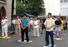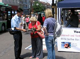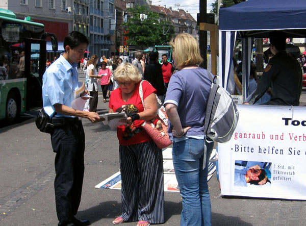 前来参加本次活动的有从法国各地赶来的学员,还有来自比利时和瑞士的大法弟子。大法弟子的功法表演,吸引了众多行人观看,人们不禁要问:如此祥和的功法为何在中国遭到禁止?学员们分发的真相资料和揭露中共罪行的展板让人们了解了迫害真相,法轮功学员心怀真善忍的理性反迫害与中共假恶斗的凶残本质形成鲜明对比。广场的另一头,活摘法轮功学员器官的模拟酷刑展,更令行人对中共的残忍暴行震惊,无不感到愤慨。了解真相的人们纷纷伸出援手,签名声援制止迫害。