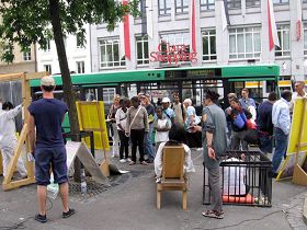 【明慧网二零零八年七月二十三日】二零零八年七月二十日,法国大法弟子在巴黎人权广场上集会,用真人模拟酷刑展的方式揭露中共对法轮功长达九年的残酷迫害,静坐悼念被迫害致死的同修,并呼吁国际社会高度关注,呼唤正义良知,制止中共的罪恶行径,停止迫害。