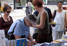 ![]() 人们纷纷签名谴责中共迫害法轮功 |