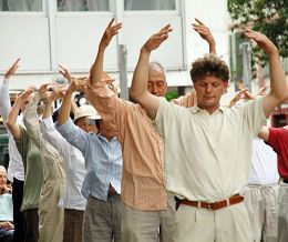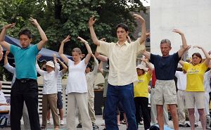 对于那些法轮功学员而言,这样的演示已经不是第一次了。九年来,世界各地的法轮功学员常常在街上,在公司里,甚至在乘车的时候,利用各种机会告诉人们:法轮功正受到中共的迫害。法轮功是源于中国的一种传统修炼方法,法轮功学员按照“真善忍”要求自己做个好人。但是中共却一直是以“假恶斗”来控制人的思想的,因此它不允许越来越多的人按照“真善忍”去生活,去辨别是非,从而开始对法轮功学员进行迫害。越多的人知道真相,越多的人也就不会受到中共的欺骗,也就会有越来越多的人要求制止这场对好人的迫害。