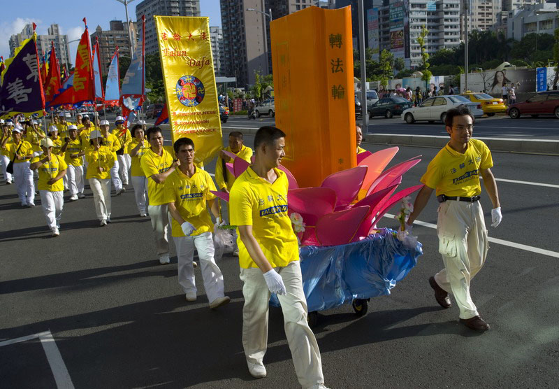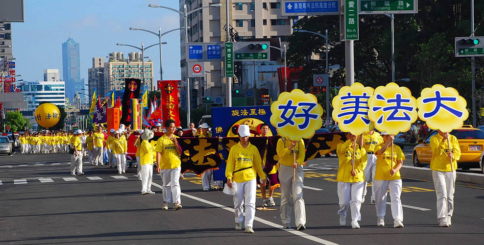二十日下午,超过千人游行队伍在高雄人潮最多的《高雄巨蛋》闹区进行,绵延高雄街道约两公里,声势雄伟,给高雄市民带来了一个灿烂而美好的下午。以下是明慧记者在现场的采访: