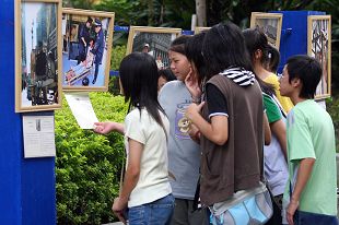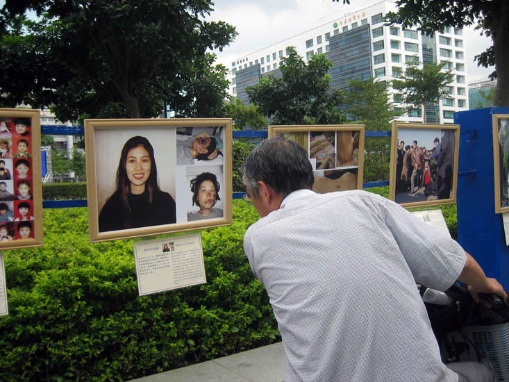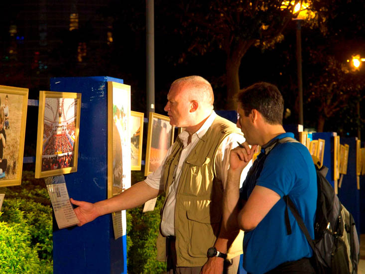 一幅幅照片,民众看到修炼法轮功“真、善、忍”的祥和美好,当看到中共邪恶迫害的图片时,这样大的对比和反差,让很多民众好奇驻足,更仔细的读着每张迫害照片的解说。刚考完大学的许同学和妹妹第一次接触到法轮功,他们来回的读着每张照片的说明,看完后他们说要回去上网了解更多法轮功的讯息。