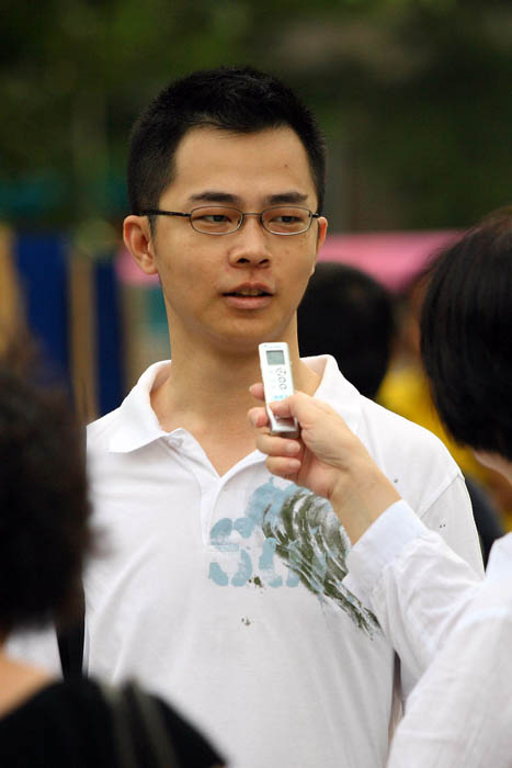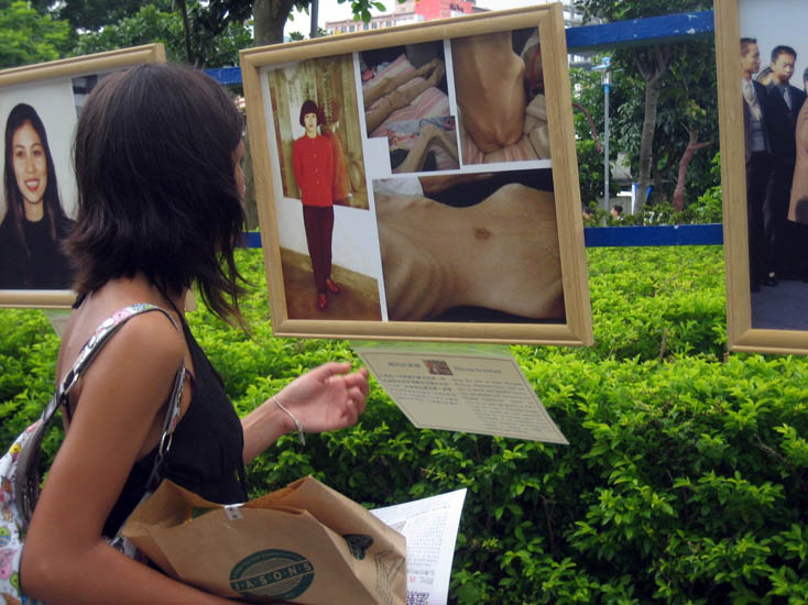 利用暑假来台湾学习中文的华中怡和李天良,是来自欧洲的华人子弟,他们停留在高蓉蓉被毁容的照片前很久的时间,即将进入医学院就读的李天良看完后直说“太残忍了,一点信仰自由都没有,我决不会去中国大陆!”当他知道中共活摘法轮功学员器官的讯息时,他激动的问:“我能做什么?”华中怡则表示,中共迫害信仰自由的做法是非常不智的。