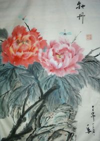 大陆大法弟子绘画:牡丹;山水画