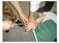 注:以下为酷刑演示图片,均为贵州各劳教所、各监狱惯用迫害法轮功学员的手段。
