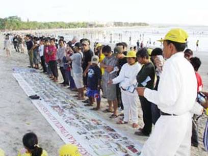 二零零八年七月二十日星期日下午,数百名巴厘岛学员聚集于古达海岸。活动内容包括沿海岸的大游行、舞蹈及戏剧演出、集体炼功和发送传单。