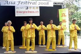 ![]() 法轮功学员再次在亚洲节的舞台上演示功法 |