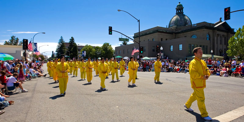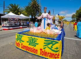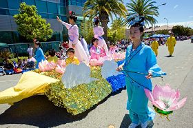 ![]() 法轮功队伍队伍应邀参加红木城游行,广受欢迎。 |