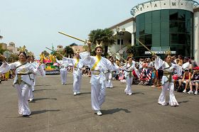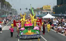 ![]() 法轮功学员精美的花车是游行中的亮丽风景 |