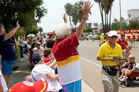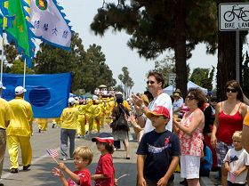 来自圣塔安那市的Carrie Priddy说她每年都来观看杭庭顿国庆游行。她被法轮大法队伍中的花车所吸引,主动要与打腰鼓的学员合影。“我为人们倾注心血准备的表演节目而感动。”说到这儿,她竟然哽咽起来。她还说:“如此五彩缤纷、充满活力的中国传统艺术和美国精神完美的结合在一起,吸引我想要了解中国古老的智慧。”