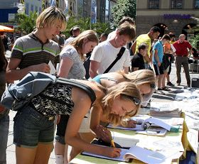 有不少大陆游客和当地的留学生也前来展台前,有的长时间和法轮功学员交谈,有的人很希望了解为什么要退出中共各种组织,有的在横幅前留影,有的接过《九评共产党》和其它一些资料,表示要回去好好看看。也有些曾经入过中共各类组织的人当场填表“三退”(退党、退团、退队),有的表示要自己到大纪元网站上去退。