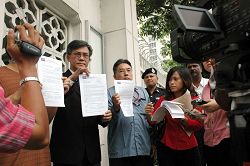 二零零八年八月四日,法轮功受迫害真相联合调查团马来西亚分团代表前往马来西亚联邦政府行政中心布特拉再也首相署和外交部,向马来西亚首相巴达威和外交部长拉依斯亚丁递交全球反迫害的百万签名成果,把全球一百三十五万人的呼吁传递予政府,希望政府关注中共对法轮功持续了长达九年的残酷迫害。