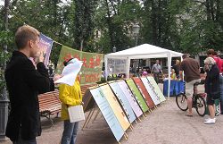 二零零八年八月九日,芬兰赫尔辛基部份法轮功学员利用周末假日,在位于市中心的海滨大道公园举行活动,展示法轮大法的美好,揭露中共九年来对遵循“真善忍”修炼的法轮功学员灭绝人性的迫害,特别谴责中共以奥运为借口疯狂抓捕近万名大陆法轮功学员的罪行。