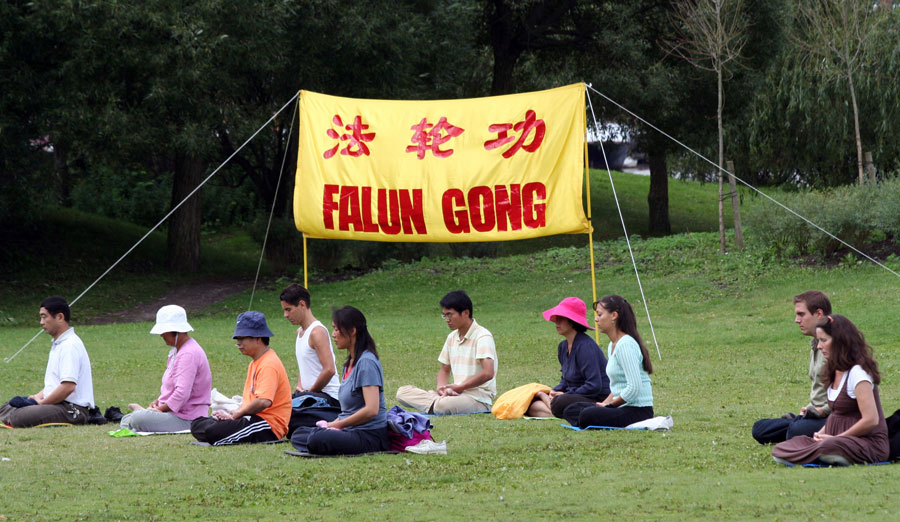 ![]() 法轮功学员炼第五套功法 |