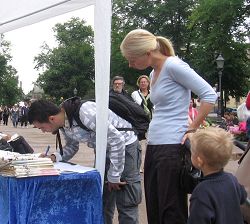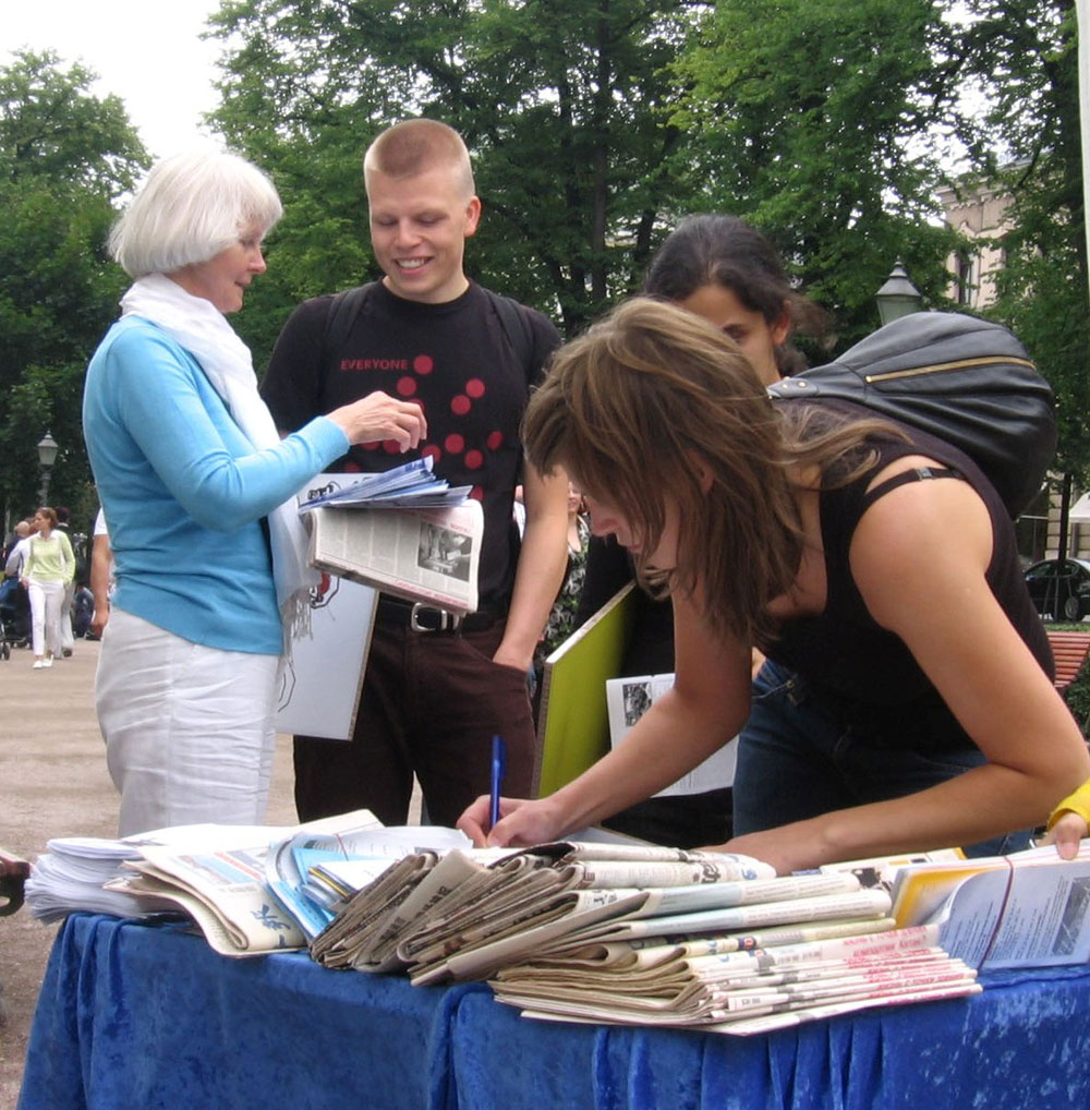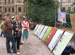 学员Sinikka说:几位途经的芬兰大赦国际的成员,也主动来签名声援法轮功,要求结束迫害。