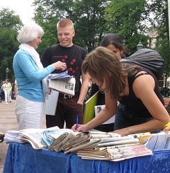 ![]() 途经的芬兰大赦国际的成员,主动来签名声援法轮功。 |