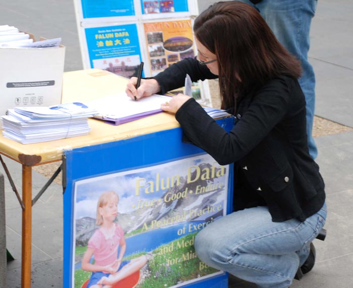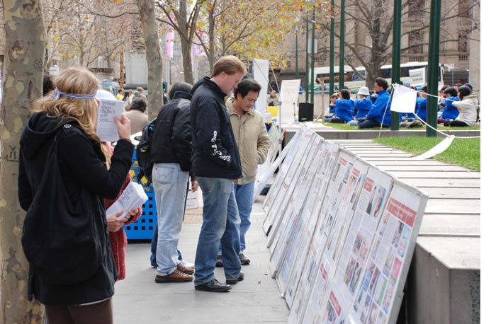 城市广场位于墨尔本市中心的主要大道Swanston街上,墨尔本法轮功学员每周都会在此举行图片展,向民众讲清法轮功受迫害的真相,越来越多的澳洲人在反迫害呼吁书上签字,或者写信给政府官员,表达他们的正义支持。