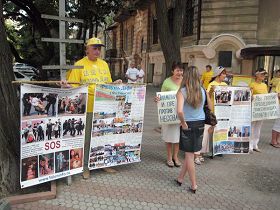 二零零八年八月七日,乌克兰法轮功学员在敖德萨中领馆前举行了抗议活动,谴责中共对法轮功的残酷迫害,同时向乌克兰市民揭露中共在所谓的“和谐”社会,如何迫害人权,奥运期间大量非法抓捕信仰“真、善、忍”的法轮功学员。