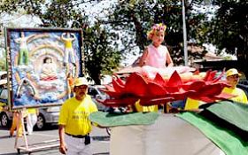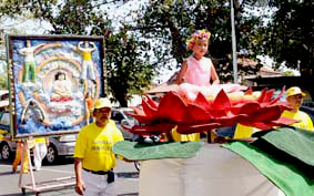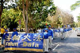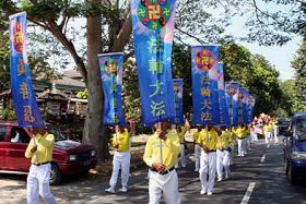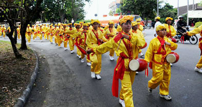 ![]() 法轮功学员在巴厘岛游行,队伍多姿多彩 |