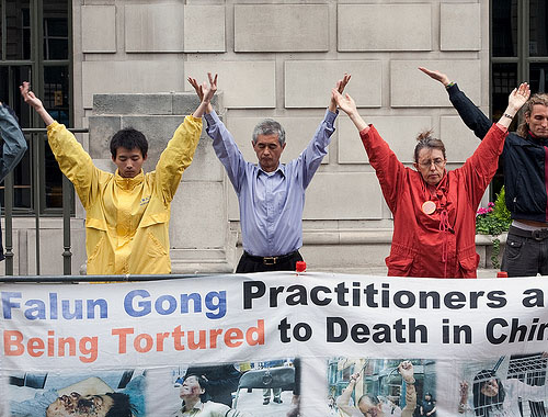 据抗议者说,在奥运会的前夕,中共对民众的压制更加严厉。数以千计的法轮功学员在上个月被拘禁。斯图加特的沃特•克里克(Walther Krickl)在十几年前就开始修炼法轮功,并为在中国被迫害的学员奔走。抗议者们讲述了一条新的迫害方式:在中国,政治犯们的器官系统的被暗地里摘取后用于移植。对这一指控的支持来自加拿大,当地的两位政治家致力于调查这一指控是否成立,他们在报告中指出,很多线索表明这一罪名成立。