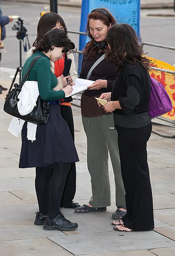 来自希腊现在在伦敦工作的两位女士今天经过中使馆,学员走上前去向她们讲真相。其中一位叫玛丽亚,经常坐公共汽车从这里经过,她立即向她的同伴阿娜斯娅介绍说,她每次坐车从这经过都有法轮功学员在这里和平抗议,提醒人在中国发生的迫害,已经有好几年了。其同伴对法轮功学员的坚持非常感慨。听到中共迫害法轮功、活体摘取法轮功学员器官的罪行,阿娜斯娅立即说:“共产主义不信神,对不对?这不仅仅是共产主义,这是法西斯主义,简直是希特勒。”“应该让更多人知道,这很重要。”